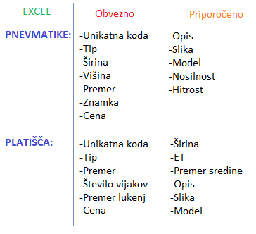 Če imate seznam vaših artiklov v Excel datodeki, je to odlično za hitro objavo vaše ponudbe.Seznam mora vsebovati sledeče stolpce: